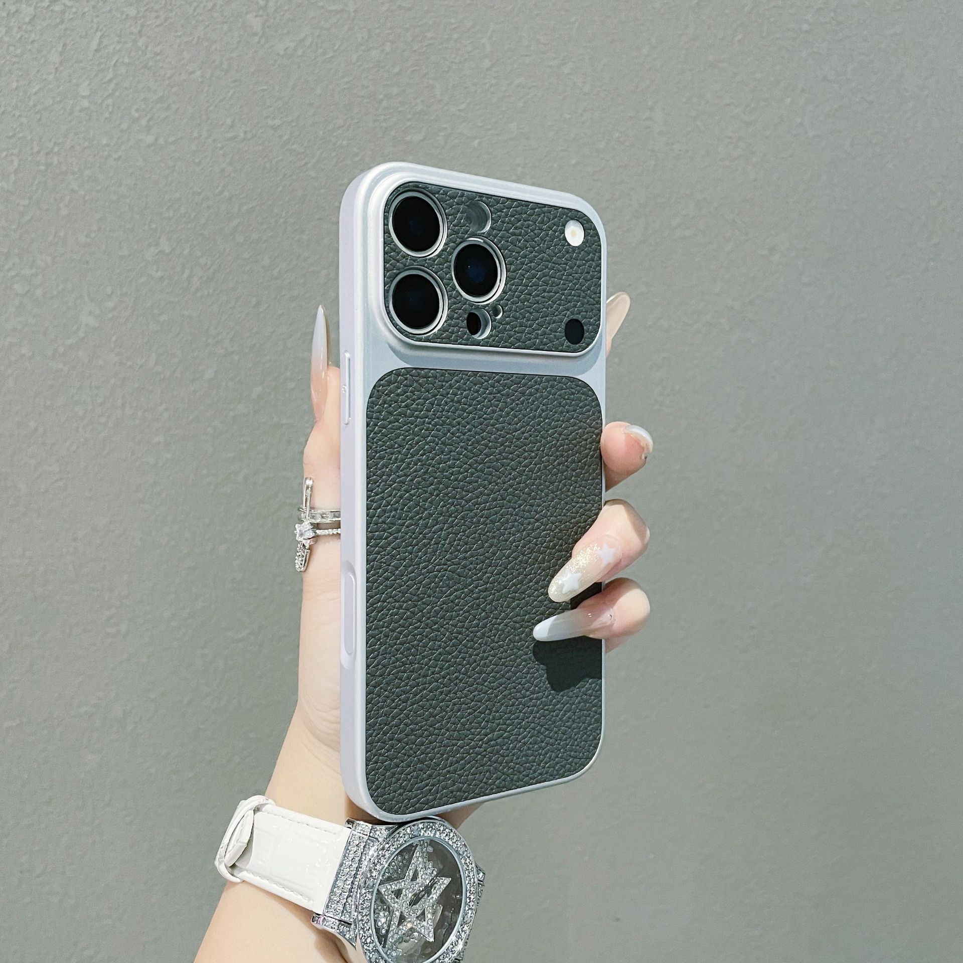 Turn into Iphone17 Large Window Mobile Phone Case in Seconds. Litchi Pattern Suitable for Apple 16Promax Fine Hole Anti-Fall Protective Cover
