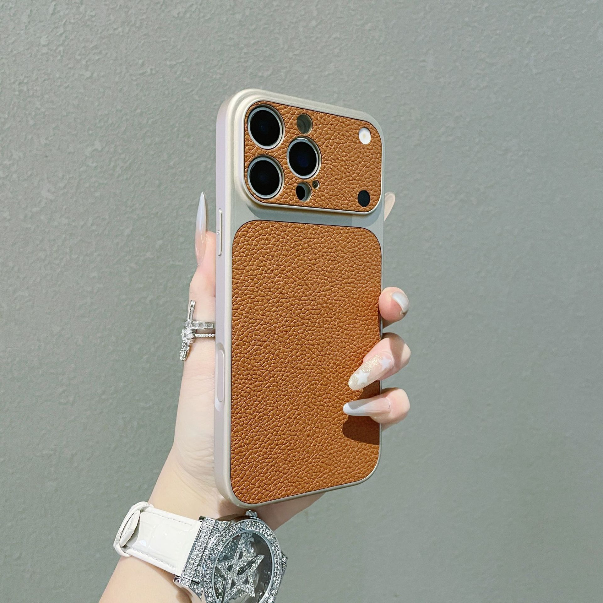 Turn into Iphone17 Large Window Mobile Phone Case in Seconds. Litchi Pattern Suitable for Apple 16Promax Fine Hole Anti-Fall Protective Cover
