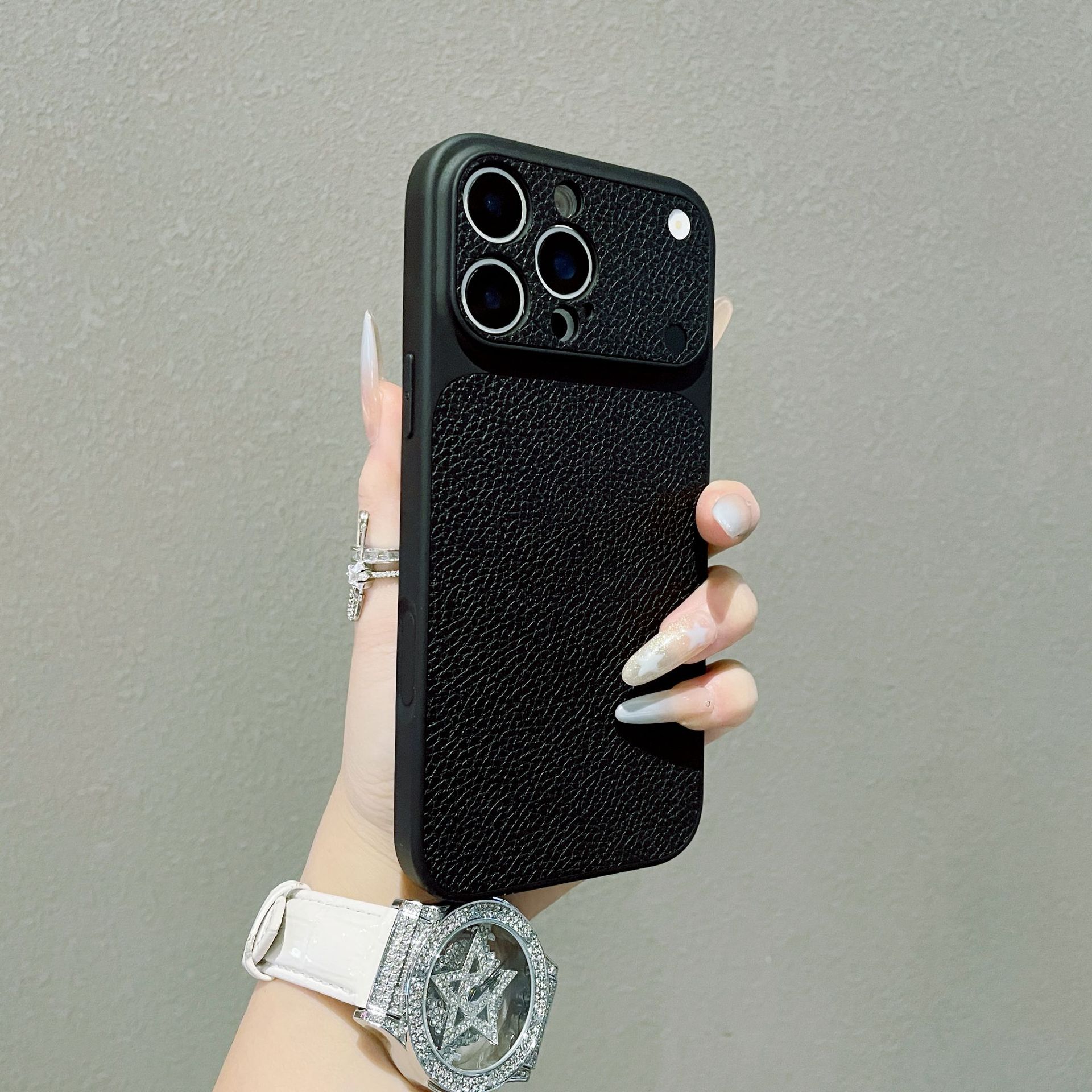 Turn into Iphone17 Large Window Mobile Phone Case in Seconds. Litchi Pattern Suitable for Apple 16Promax Fine Hole Anti-Fall Protective Cover